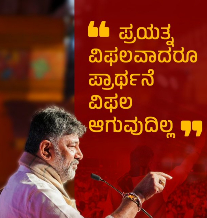 “ಪ್ರಯತ್ನ ವಿಫಲವಾದರೂ ಪ್ರಾರ್ಥನೆ ವಿಫಲವಾಗುವುದಿಲ್ಲ” ಎಂದು ಶಿವಕುಮಾರ್ ‘ಎಕ್ಸ್’ ಪೋಸ್ಟ್ನಲ್ಲಿ ಹೇಳಿದ್ದಾರೆ.