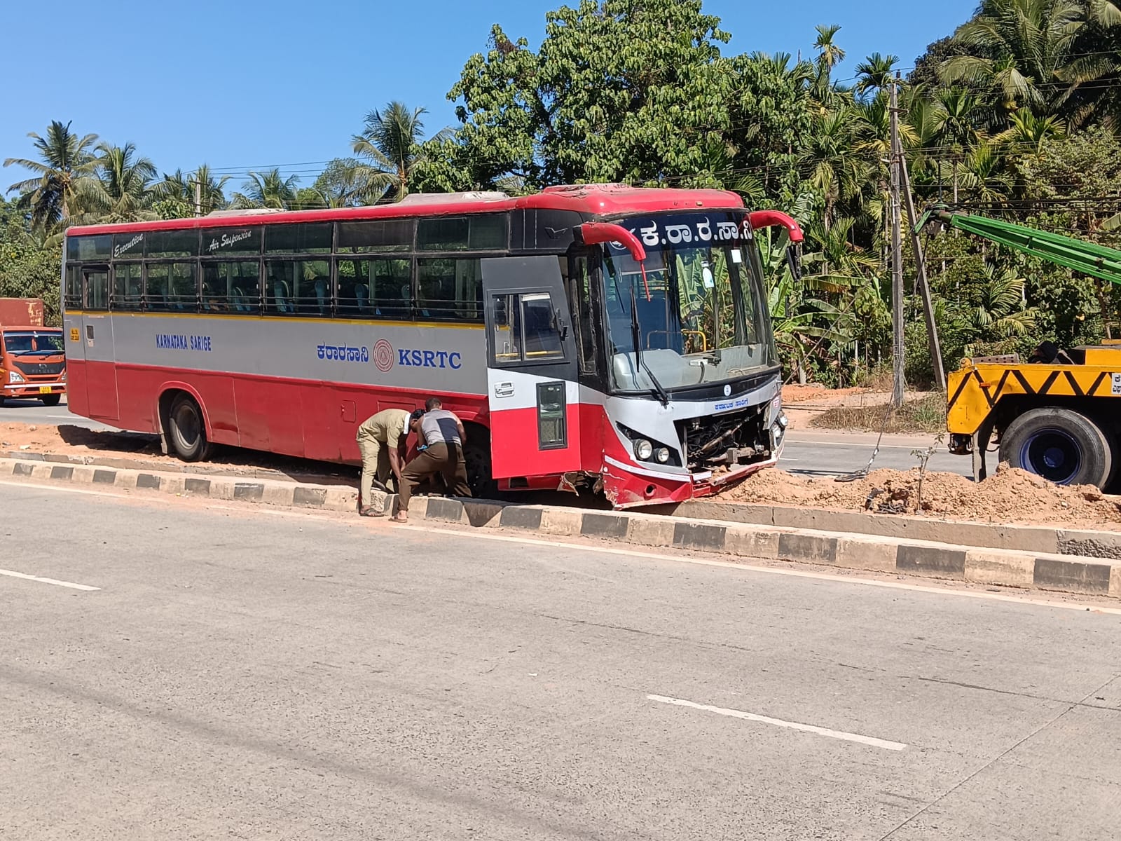 ಸದ್ಯ, ಕ್ರೇನ್ ಸ್ಥಳಕ್ಕೆ ಬಂದಿದ್ದು, ಬಸ್ ತೆರವು ಕಾರ್ಯ ನಡೆಸಲಾಗುತ್ತಿದೆ.