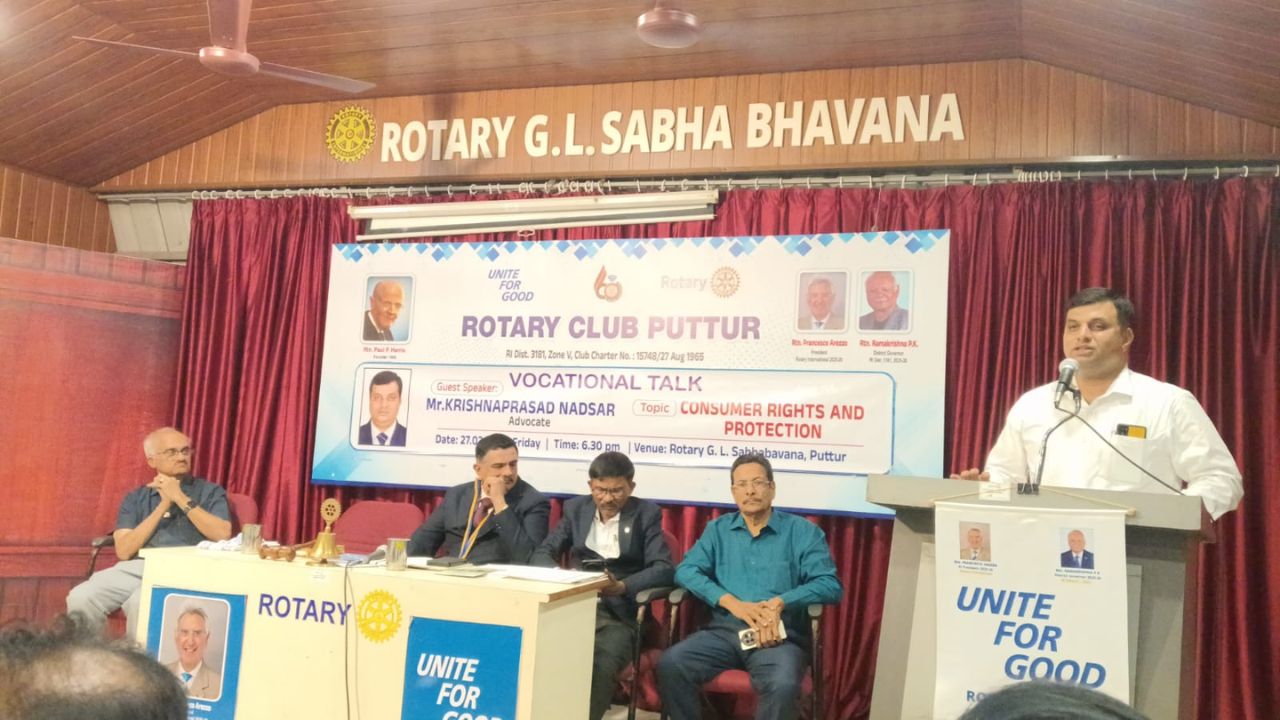 ಪುತ್ತೂರಿನ ರೋಟರಿ ಜಿ.ಎಲ್ ಸಭಾ ಭವನದಲ್ಲಿ ರೋಟರಿ ಕ್ಲಬ್ ಆಯೋಜಿಸಿದ್ದ “ಗ್ರಾಹಕ ಹಕ್ಕುಗಳು ಮತ್ತು ಹಿತರಕ್ಷಣೆ” ಎಂಬ ಉಪನ್ಯಾಸ ಕಾರ್ಯಕ್ರಮದಲ್ಲಿ ಸಂಪನ್ಮೂಲ ವ್ಯಕ್ತಿಯಾಗಿ ಅವರು ಮಾತನಾಡಿದರು. ಗ್ರಾಹಕ ಕಾಯ್ದೆಯ ವಿವಿಧ ಆಯಾಮಗಳು, ಗ್ರಾಹಕರ ಹಕ್ಕುಗಳು ಮತ್ತು ಕರ್ತವ್ಯಗಳ ಬಗ್ಗೆ ವಿವರಿಸಿದ ಅವರು, ಒಂದು ವೇಳೆ ಮೋಸ ಆದಲ್ಲಿ ಅಥವಾ ಹಕ್ಕುಚ್ಯುತಿಯಾದಲ್ಲಿ ಕಾನೂನು ಚೌಕಟ್ಟಿನಲ್ಲಿ ಹೇಗೆ ಪರಿಹಾರ ಕಂಡುಕೊಳ್ಳಬಹುದು ಎಂಬ ಬಗ್ಗೆ ಸವಿವರ ಮಾಹಿತಿ ನೀಡಿದರು.