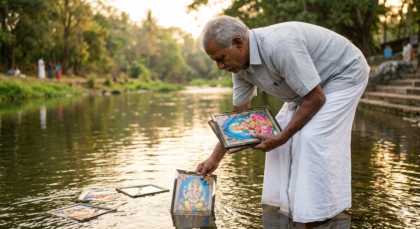ಶಾಸ್ತ್ರದ ಪ್ರಕಾರ, ಭಿನ್ನವಾದ ದೇವರ ಫೋಟೋ ಅಥವಾ ವಿಗ್ರಹಗಳನ್ನು ಹರಿಯುವ ನದಿ, ಸರೋವರ ಅಥವಾ ಸಮುದ್ರದಲ್ಲಿ ವಿಸರ್ಜಿಸುವುದು ಅತ್ಯಂತ ಶ್ರೇಷ್ಠ.