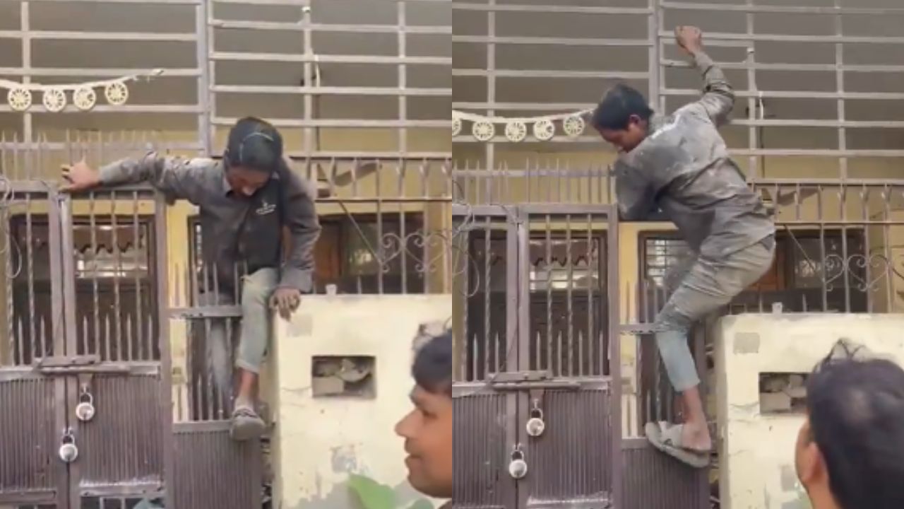 ಆದರೆ, ವಿಧಿಯಾಟ ಎಂಬಂತೆ ಗೇಟ್ನ ಮೇಲ್ಭಾಗದಲ್ಲಿದ್ದ ಚೂಪಾದ ಕಬ್ಬಿಣದ ಸರಳುಗಳು ಕಳ್ಳನ ಬಟ್ಟೆಗೆ ಅಥವಾ ಕಾಲಿಗೆ ಸಿಲುಕಿಕೊಂಡಿವೆ. ಎಷ್ಟೇ ಪ್ರಯತ್ನಿಸಿದರೂ ಹೊರಬರಲಾಗದೆ ಆತ ಅಲ್ಲೇ ನೇತಾಡಿದ್ದಾನೆ. ಅಷ್ಟರಲ್ಲಿ ಕಿರುಚಾಟ ಕೇಳಿ ಓಡಿ ಬಂದ ನೆರೆಹೊರೆಯವರು ಕಳ್ಳನನ್ನು ರೆಡ್ ಹ್ಯಾಂಡ್ ಆಗಿ ಹಿಡಿದಿದ್ದಾರೆ.