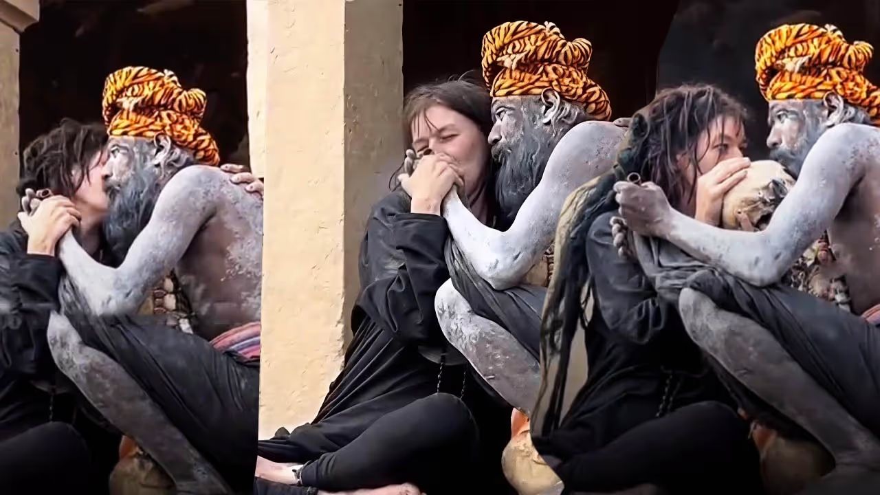 ವೈರಲ್ ಆಗಿರುವ ವಿಡಿಯೋದಲ್ಲಿ ಅಘೋರಿ ಸಾಧು ಮತ್ತು ವಿದೇಶಿ ಮಹಿಳೆಯೊಬ್ಬರು ಅಕ್ಕಪಕ್ಕದಲ್ಲೇ ಕುಳಿತಿದ್ದಾರೆ. ಮಹಿಳೆ ಅಘೋರಿಯೊಂದಿಗೆ ಚಿಲ್ಲಮ್ ಸೇದುತ್ತಾ ಕುಶಲಬರಿತವಾಗಿ ಮಾತನಾಡುತ್ತಿರುವುದು ಕಂಡುಬರುತ್ತದೆ.ಚಿಲ್ಲಮ್ ಸೇದಿದ ನಂತರ ಆ ಮಹಿಳೆ ಹಠಾತ್ತನೆ ಅಘೋರಿಯ ಹತ್ತಿರ ಬಂದು ಚುಂಬಿಸಿದ್ದಾರೆ. ಇದಾದ ಬೆನ್ನಲ್ಲೇ ಆಕೆ ವಿಚಿತ್ರವಾಗಿ ಕೂಗಾಡುತ್ತಾ, ಅಸಾಮಾನ್ಯ ರೀತಿಯಲ್ಲಿ ವರ್ತಿಸುತ್ತಿರುವುದು ವಿಡಿಯೋದಲ್ಲಿ ದಾಖಲಾಗಿದೆ.