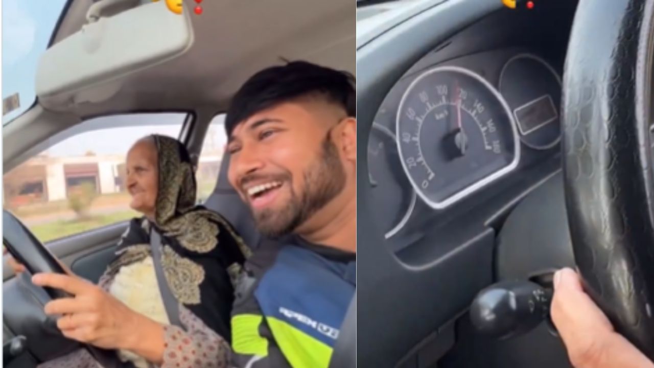 ಸೀಟ್ ಬೆಲ್ಟ್ ಧರಿಸಿ, ಫುಲ್ ಕಾನ್ಫಿಡೆನ್ಸ್ನಿಂದ ಸ್ಟೀರಿಂಗ್ ಹಿಡಿದಿರುವ ಅಜ್ಜಿ, ಎಕ್ಸಲೇಟರ್ ಮೇಲೆ ಕಾಲಿಟ್ಟರೆ ಸಾಕು ಕಾರು ಗಾಳಿಯಲ್ಲಿ ತೇಲುತ್ತಿದೆ. ಸ್ಪೀಡೋಮೀಟರ್ನಲ್ಲಿ ಮುಳ್ಳು 120 ದಾಟುತ್ತಿದ್ದರೂ ಅಜ್ಜಿಯ ಮುಖದಲ್ಲಿ ಕಿಂಚಿತ್ತೂ ಭಯವಿಲ್ಲ. ಪಕ್ಕದಲ್ಲಿ ಕುಳಿತಿರುವ ಮೊಮ್ಮಗ ಅಥವಾ ಸಂಬಂಧಿಕರು ಈ ಸಾಹಸವನ್ನು ಕ್ಯಾಮೆರಾದಲ್ಲಿ ಸೆರೆಹಿಡಿದಿದ್ದಾರೆ.