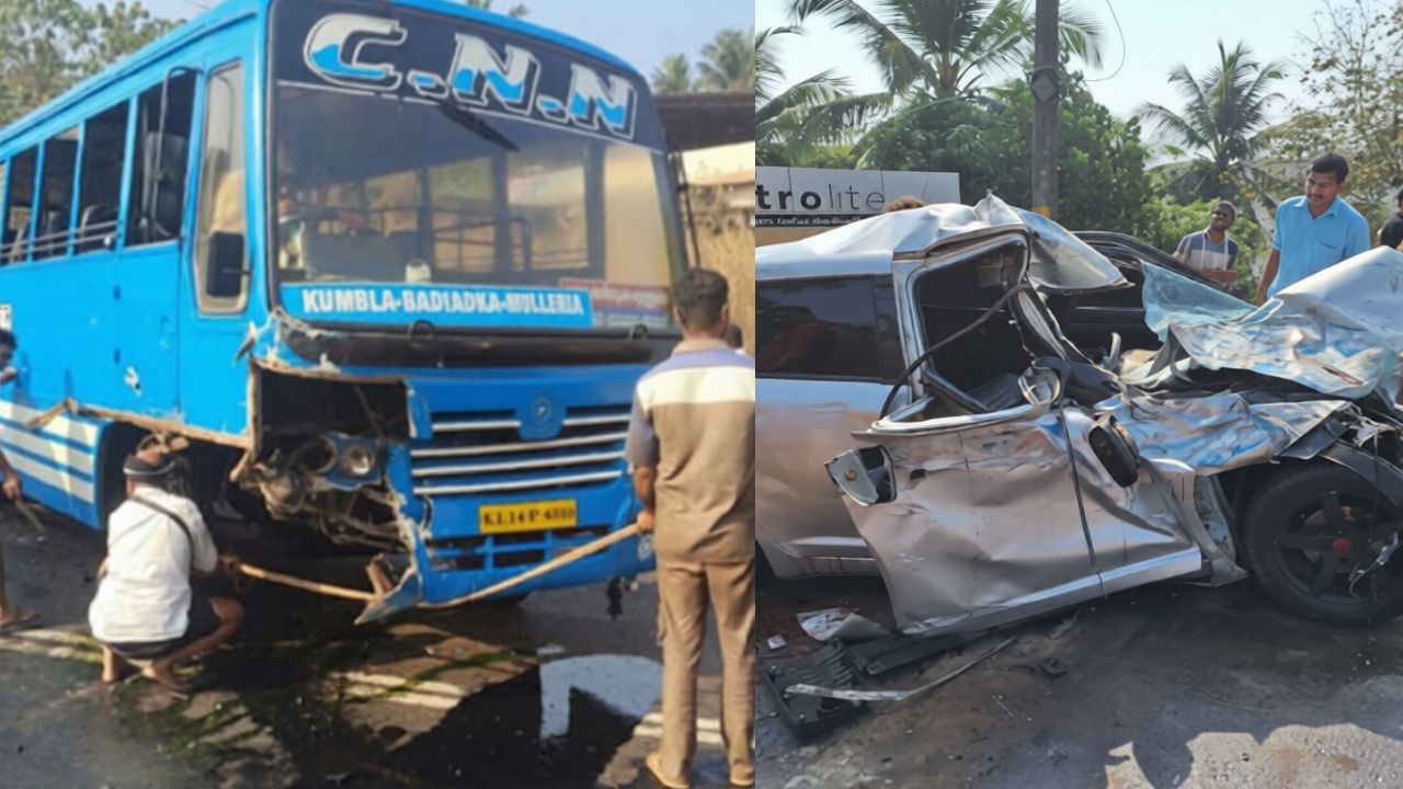 ಕಾಸರಗೋಡು: ಜಿಲ್ಲೆಯ ಕುಂಬಳೆ ಸಮೀಪದ ಶಾಂತಿಪಳ್ಳ ತಿರುವಿನಲ್ಲಿ ಬುಧವಾರ ಮಧ್ಯಾಹ್ನ ಖಾಸಗಿ ಬಸ್ ಮತ್ತು ಕಾರಿನ ನಡುವೆ ಭೀಕರ ಅಪಘಾತ ಸಂಭವಿಸಿದೆ. ಅಪಘಾತದ ತೀವ್ರತೆಗೆ ಕಾರು ಸಂಪೂರ್ಣ ನಜ್ಜುಗುಜ್ಜಾಗಿದ್ದು, ಒಟ್ಟು 12 ಮಂದಿ ಗಾಯಗೊಂಡಿದ್ದಾರೆ.ಕುಂಬಳೆಯಿಂದ ಬದಿಯಡ್ಕ ಕಡೆಗೆ ತೆರಳುತ್ತಿದ್ದ ಕಾರು ಮತ್ತು ಕುಂಬಳೆ ಕಡೆಗೆ ಬರುತ್ತಿದ್ದ ಖಾಸಗಿ ಬಸ್ ಶಾಂತಿಪಳ್ಳದ ತಿರುವಿನಲ್ಲಿ ಮುಖಾಮುಖಿ ಡಿಕ್ಕಿ ಹೊಡೆದಿವೆ. ಡಿಕ್ಕಿಯ ರಭಸಕ್ಕೆ ಕಾರಿನ ಮುಂಭಾಗ ನಜ್ಜುಗುಜ್ಜಾಗಿದ್ದು, ಪ್ರಯಾಣಿಕರು ಒಳಗೆ ಸಿಲುಕಿಕೊಂಡಿದ್ದರು. ತಕ್ಷಣ ಸ್ಥಳಕ್ಕಾಗಮಿಸಿದ ಸ್ಥಳೀಯ ನಾಗರಿಕರು ಹರಸಾಹಸ ಪಟ್ಟು ಗಾಯಾಳುಗಳನ್ನು ಹೊರತೆಗೆದು ಆಸ್ಪತ್ರೆಗೆ ಸಾಗಿಸಿದ್ದಾರೆ.