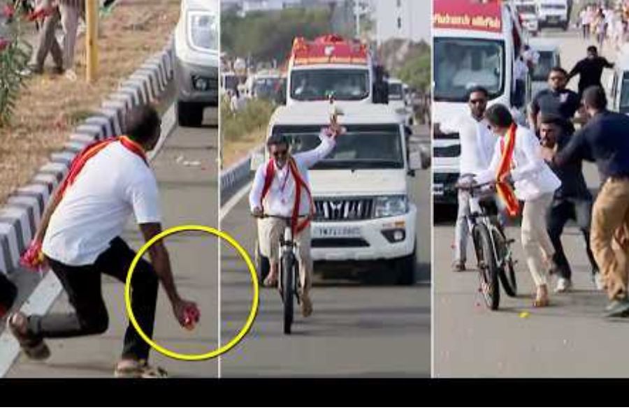 ಸೈಕಲ್ ರೋಡ್‌ಶೋ ನಡೆಸುತ್ತಿದ್ದ ವೇಳೆ, ಅಭಿಮಾನಿಯೊಬ್ಬರು ವಿಜಯ್ ಅವರತ್ತ ಹೂವಿನ ಗುಚ್ಛವನ್ನು ಎಸೆದರು. ಮೊದಲ ನೋಟಕ್ಕೆ ಅದು ಅನುಮಾನಾಸ್ಪದ ವಸ್ತುವಿನಂತೆ ಕಾಣುತ್ತಿದ್ದರಿಂದ, ವಿಜಯ್ ತಕ್ಷಣವೇ ತಮ್ಮ ಸೈಕಲ್‌ನಿಂದ ಇಳಿದು ಹಿಂದೆ ಸರಿದರು.