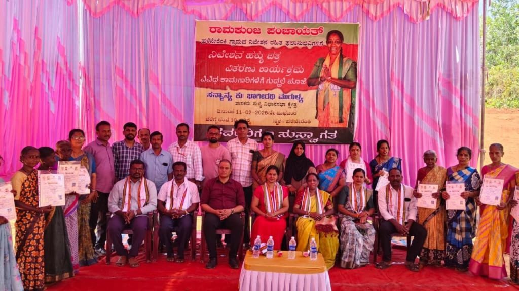 ರಾಮಕುಂಜ, ಫೆ.11: ಗ್ರಾಮಪಂಚಾಯತ್ ವ್ಯಾಪ್ತಿಯಲ್ಲಿ ನಿವೇಶನ ರಹಿತರಿಗೆ ಹಕ್ಕುಪತ್ರ ವಿತರಣೆ, ವಿವಿಧ ಕಾಮಗಾರಿಗಳ ಉದ್ಘಾಟನೆ ಮತ್ತು ಗುದ್ದಲಿಪೂಜೆಯನ್ನು ಸುಳ್ಯ ಶಾಸಕಿ ಭಾಗೀರಥಿ ಮುರುಳ್ಯ ಅವರು ಇಂದು ನೆರವೇರಿಸಿದರು. ಬಳಿಕ ಮಾತನಾಡಿದ ಅವರು, ರಾಮಕುಂಜ ಗ್ರಾಮ ಪಂಚಾಯಿತಿ ವತಿಯಿಂದ ನಿವೇಶನ ರಹಿತರಿಗೆ ನಿವೇಶನ ಹಕ್ಕು ಪತ್ರವನ್ನು ನೀಡುವ ಕಾರ್ಯಕ್ರಮ ಮತ್ತು ವಿವಿಧ ಕಾಮಗಾರಿಗಳ ಉದ್ಘಾಟನೆಯನ್ನು ಮಾಡಲಾಗಿದೆ ಎಂದರು.