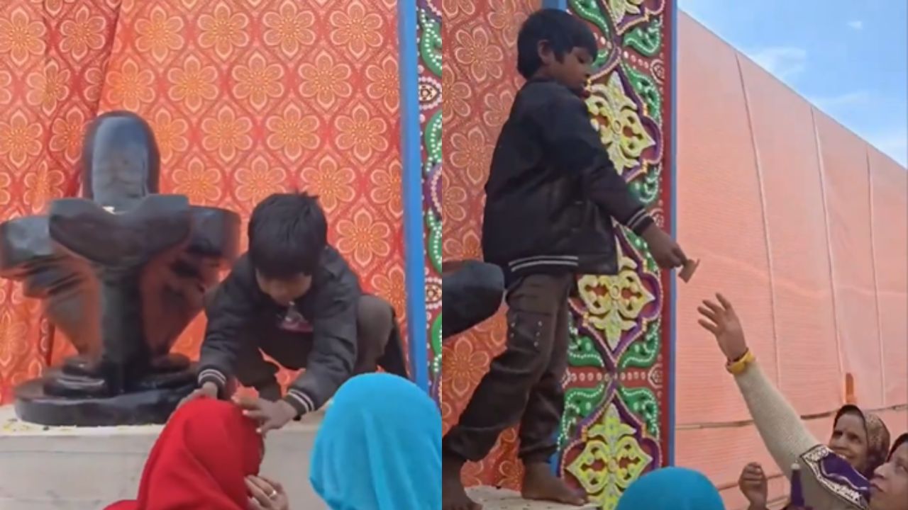 ಶಿವನ ದೇವಸ್ಥಾನದ ಆವರಣದಲ್ಲಿ ನಡೆದ ಹೃದಯಸ್ಪರ್ಶಿಯ ಘಟನೆಯೊಂದಕ್ಕೆ ಸಾಕ್ಷಿಯಾಗಿದೆ. ಸಾಮಾಜಿಕ ಜಾಲತಾಣದಲ್ಲಿ ಈ ವಿಡಿಯೋ ಭಾರೀ ವೈರಲ್​​ ಆಗಿದೆ. ಜನರು ಇದೊಂದು ಉತ್ತಮ ವಿಡಿಯೋ ಎಂದರೆ, ಇನ್ನು ಕೆಲವರು ಇದೊಂದು ವ್ಯಾಪರವಾಗಿದೆ ಎಂದು ಹೇಳಿದ್ದಾರೆ. ಈ ವಿಡಿಯೋ ಈಗ ಇಂಟರ್ನೆಟ್‌ನಲ್ಲಿ ಎಲ್ಲರ ಮನ ಗೆಲ್ಲುತ್ತಿದೆ. ಭಕ್ತಿ ಮತ್ತು ಪ್ರಾಮಾಣಿಕತೆಗೆ ವಯಸ್ಸಿನ ಹಂಗಿಲ್ಲ ಎಂಬುದಕ್ಕೆ ಈ ಬಾಲಕನೇ ಸಾಕ್ಷಿ.ಸಾಮಾನ್ಯವಾಗಿ ದೇವಸ್ಥಾನಗಳ ಮುಂದೆ ಹಿರಿಯರು ಅಥವಾ ಪಂಡಿತರು ಆಶೀರ್ವಾದ ನೀಡುವುದನ್ನು ನಾವು ನೋಡುತ್ತೇವೆ. ಆದರೆ ಇಲ್ಲಿ, ತಲೆಯಲ್ಲಿ ವಿಭೂತಿ ಧರಿಸಿ, ಕಣ್ಣಲ್ಲಿ ಅತೀವವಾದ ಶ್ರದ್ಧೆ ತುಂಬಿಕೊಂಡಿರುವ ಈ ಬಣ್ಣದ ಬಾಲಕ, ಭಕ್ತರಿಂದ ಕೇವಲ 10 ರೂ. ಕಾಣಿಕೆ ಸ್ವೀಕರಿಸಿ ಅವರಿಗೆ ಮನಸಾರೆ ಹರಸುತ್ತಿದ್ದಾನೆ.